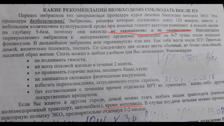 Ох уж эта бюрократия! Я потом жалела зачем я всё это читала что подписывала т.к. в голове всё прочитанное крутилось постоянно 😵 особенно добили предупреждения о последствиях типа "наукой пока не доказано как отразится криозаморозка на здоровье и продолжительности жизни будущего ребенка" 🙈 А вот выданные рекомендации после пункции улыбнули: