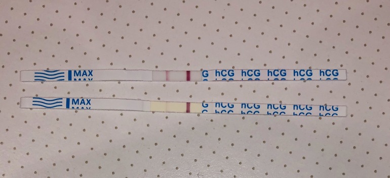 Может быть и погрешность тестов.Не забивайте голову,их две и они ярчают-это главное,поздравляю Вас)
