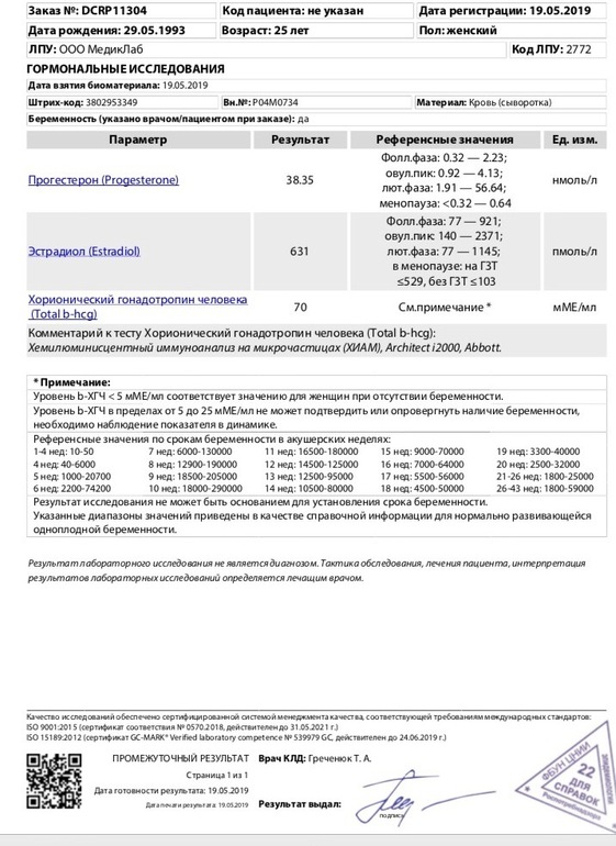 Сегодня перед сдачей анализов делала тест,там очень-очень бледная полосочка была,поэтому не думала,что хгч будет более 20 ед. Была в полном отчаянии и смирилась с пролётом. Теперь колбасит,боюсь,что это ошибка лабы. В прошлом протоколе через 74 часа после укола по той же схеме хгч был 30,6