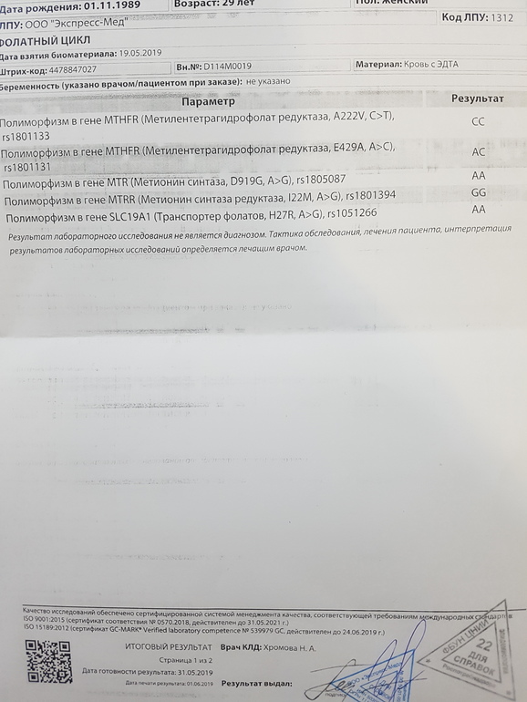 А да, и сказки про "неусвоение фольки" мимо ушей тоже. Эти слухи сильно преувеличены. Гомоцистеин сдавали?