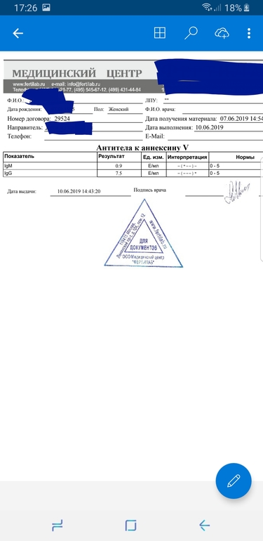 Анализы и процедуры. Помощь в расшифровке результатовЗдравствуйте, девчонки кто сдавал антитела к аннексину V подскажите если lgG больше нормы что это означает? Прикрепляю свой результат анализа.