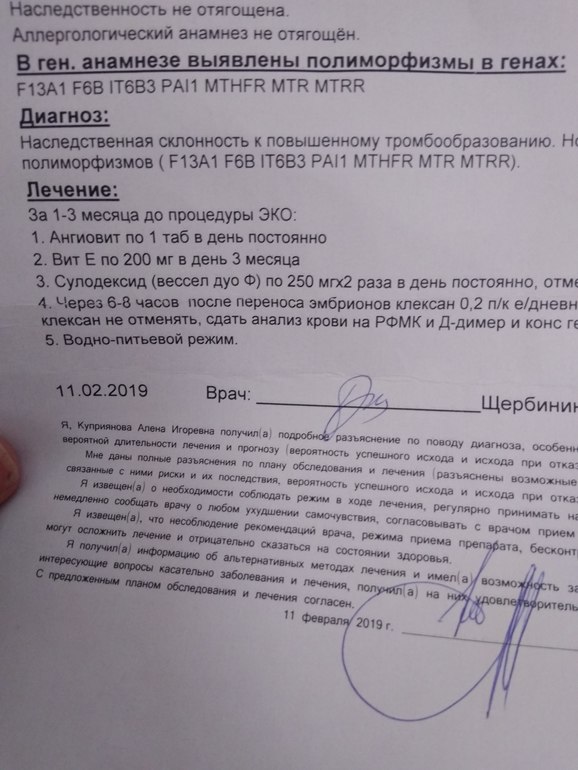 У вас очень подробно расписано. Мне на приёме генетик обьяснил кратко,дал нечитаемую бумажку со страшными рисками и отпустил в свободное плавание. Если интересно,то я сделаю фото выписки обследования. Но напишите в лс.