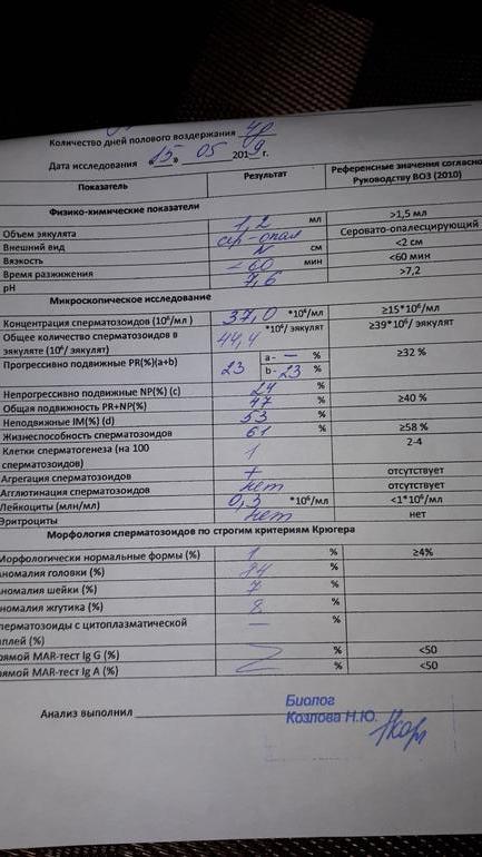 вот последний анализ спермограммы,сдавали в мае в эко поликлинике