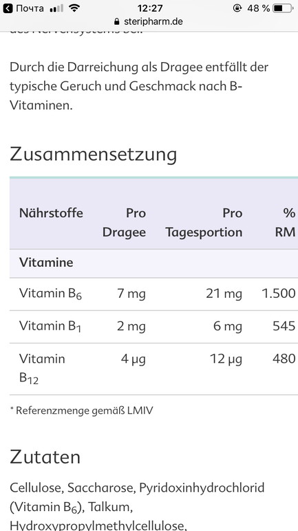 я тоже принимала витаминный комплекс, содержащий витамины В, но токсикоз он не облегчал. в этом препарате nausema вот такая дозировка (см фото)