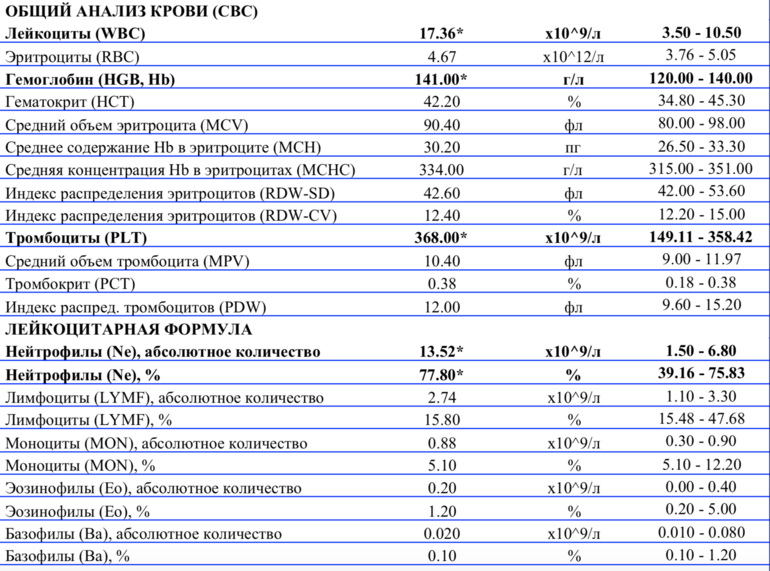 Лейкоциты очень высокие. С такими адекватный врач не возьмёт. Воспалительный процесс