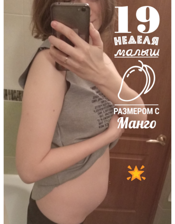 Всё о нашей беременностиИдёт 20я неделя, точнее 19.1. Это считай уже половина срока..я думала к этому моменту я буду глубоко беременная и живот будет идти впереди меня😊.Но, что то я начинаю переживать..у врача уже спросила...вам не кажется, что живот у меня для этого срока маленький?!! По замерам все нормально, сердцебиение на каждом приёме находим..а хожу я сейчас раз в неделю(на больничном). Хорион по передней стенке...16го второй скрининг- жду не дождусь, может отставать стали?😨 хотя по первому скринингу опережали на неделю...Шевелюшек как таковых ещё нет..пару дней назад начала чувствовать какие-то перекаты и вчера под вечер явно что-то булькнуло) а сегодня пока опять тихо😔Я вот думаю - это ж потом как живот будет расти? Каждый день на пару см, а может быстрее?))Фото прилагаю.Девочки, успокойте меня...смотрю у многих на этом сроке такой беременяшный животик уже...у кого было также?P.s. дублирую пост в родное сообщество. Всем 🙋 кто помнит меня..Не успели оглянуться, а уже половина пути к встрече с роднулечкой пройдено!Модераторы, поправьте если не в ту категорию...