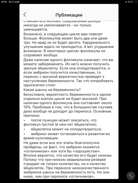 Судя по ответу моего организма на стимуляцию, такое ощущение, что у меня АМГ вообще пропало без вести, ФСГ взлетело до небес. Когда врач (работает первый год) предложил донора, обронил такую фразу, что уже не знает, что и делать к концу года у всех такой бедный ответ яичников на стимуляцию. Только и бронирует доноров. Так может дело не в пациентках, а в схеме стимуляции.