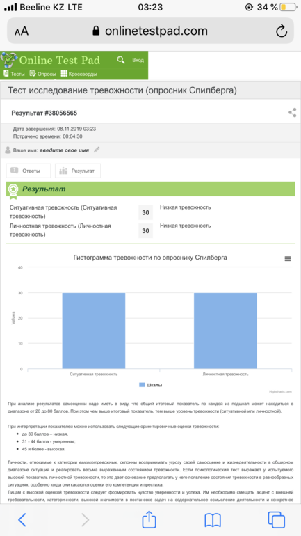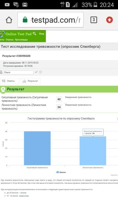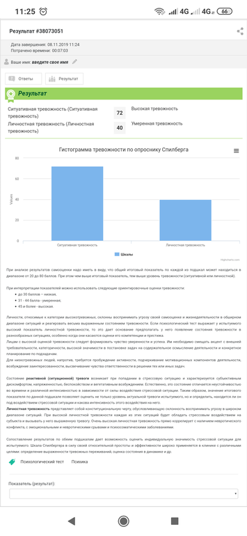 Согласно результатам тестирования, у большинства женщин, которые проходят лечение методом ЭКО, отмечается высокий уровень ситуативной тревожности. Это говорит скорее о том, что протокол ЭКО и все что с ним связано вызывает много переживаний. Личностная тревожность тоже повышена. Причины могут быть разные, их много. У женщин много страхов (наверняка до ЭКО у многих было много разных попыток забеременеть, пережито много разочарований, есть страх неудач. Также существуют установки, которые могут блокировать наступление Б, такие как страх финансовой зависимости, неуверенность в партнере, страх потерять личную независимость и тд и тп), например, и они могут мешать наступлению беременность, результативность протоколов снижается. Желательно разобраться со страхами, для начала их выявив.