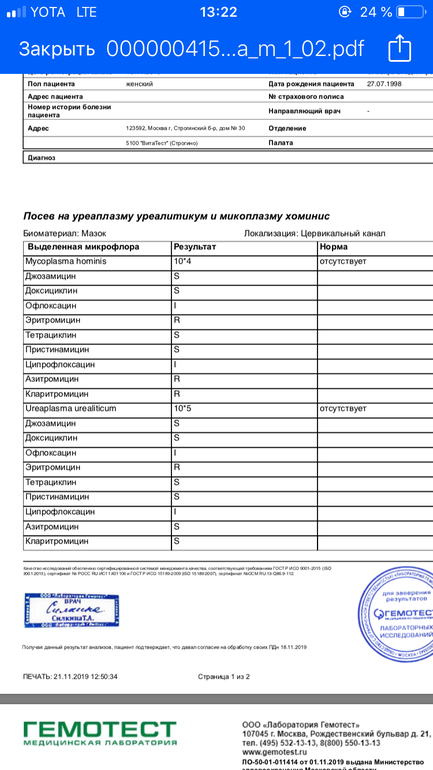 У меня пцр чисто)Микоплазма и уреаплазма не обнаружено.