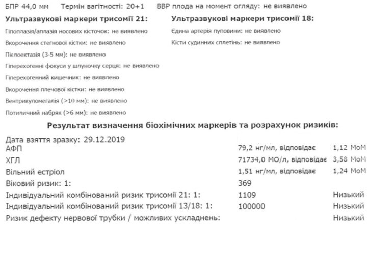 При первом скрининге у меня указаны высокие риски (1:199) по трисомии 21 (Синдром Дауна), УЗИ все отличные, вопросы только к ХГЧ на первом скрининг 4,387 МОм.