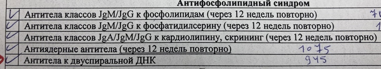 А почему нет В2гликопротеина? Он чаще чем ат к фосфолипидам скачет. И маркер сразу к нескольким аутоиммунным проблемам. Только я бы все эти АТ сдавала хотя бы перед пукцией, когда организм будет в стрессе от стимуляции, а сейчас скорее всего всё в норме будет. АТ могут подниматься и опускаться в зависимости от обстоятельст и нагрузки на организм. Или повторно после имплантации.