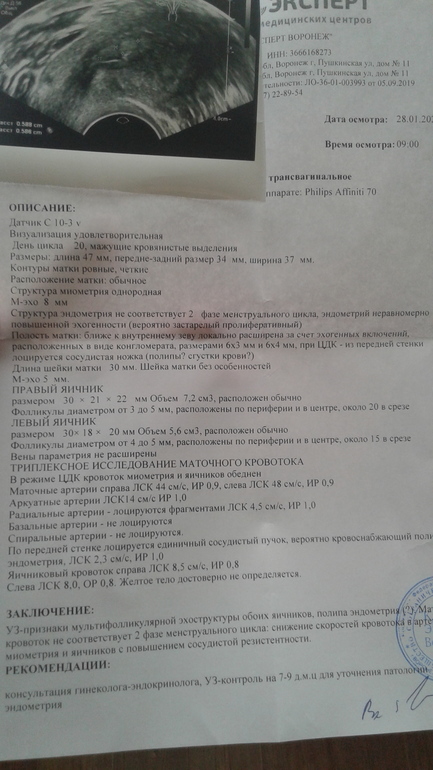 Неудачные попытки((( Разбор пролета, мозговой штурм в дообследованииДевочки, кто не читал мою историю, вкратце: свежий прот в 2017, крио в ноябре 2019 - пролет. Обследовалась в центре планирования семьи по омс. После крио пролета решила обследоваться НОРМАЛЬНО, а не по списку, который рекомендован на квоту. Ре моей так же пофиг. Сегодня сходила на узи с доплером к хорошему специалисту: кровоток плохой((( эндик не соответствует 2 фазе(( и подозрение на полип((( вот тебе на...а по узи в ноябре перед крио на в центре планир. - все зашибись было((( Осталось мутации сдать. Девочки, а какой врач лечит то этот кровоток?