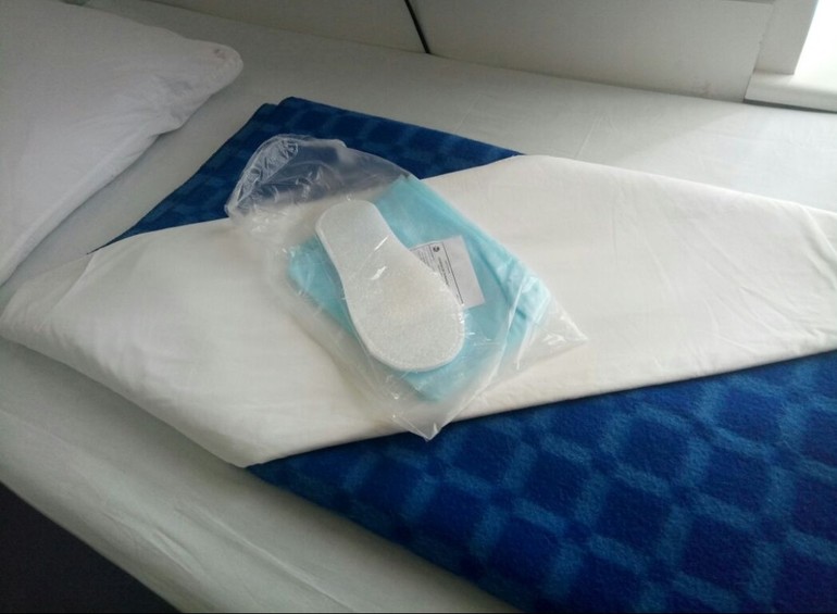 Такой наборчик выдали. Одноразовые тапочки, ночнушка. Кровать в твоём распоряжении :)))
