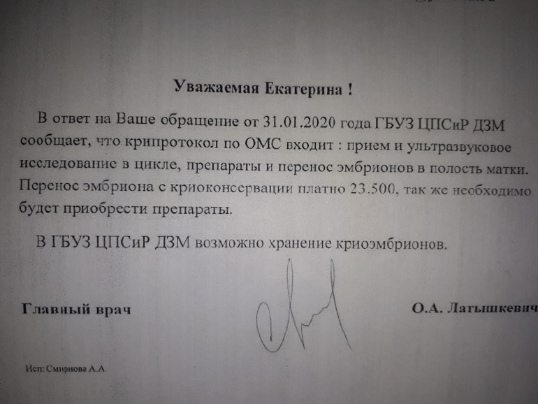 Писала письмо с вопросом," что входит в криоперенос "в ЦПСИР на Севастопольском и вот пришел ответ: