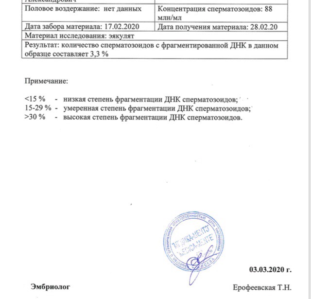 Анализы и процедуры. Помощь в расшифровке результатовДевочки, привет! тут всё хорошо? не за что переживать? по спермограмме сейчас поставили тератозооспермию, хотя 1,5 года назад была нормозооспермия! и тогда же было первое эко! но все эмбрионы плохого качества получились и подсадку отменили:( репродуктолог посоветовала сдать ДНК Фрагментацию. вот сдали...спустя 1,5 года...
