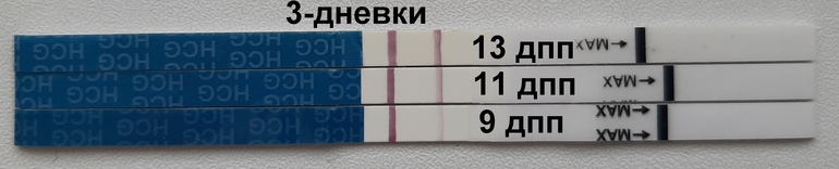 Первый тест я сделала на 9 дпп, когда результат уже не оставил бы сомнений. На этот раз у меня не было страшного нетерпения, как в предыдущие переносы. Картинку прилагаю для тех, кто ищет, как я совсем недавно (с учетом новых данных, это тесты двух прикрепившихся 3-дневок).