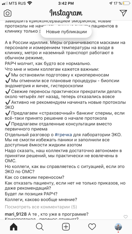 Московская клиника. Отменили ЭКО, крио и др. плановые процедуры типа пайпель, приемов нет вообще. Ждут улучшения эпид. обстановки