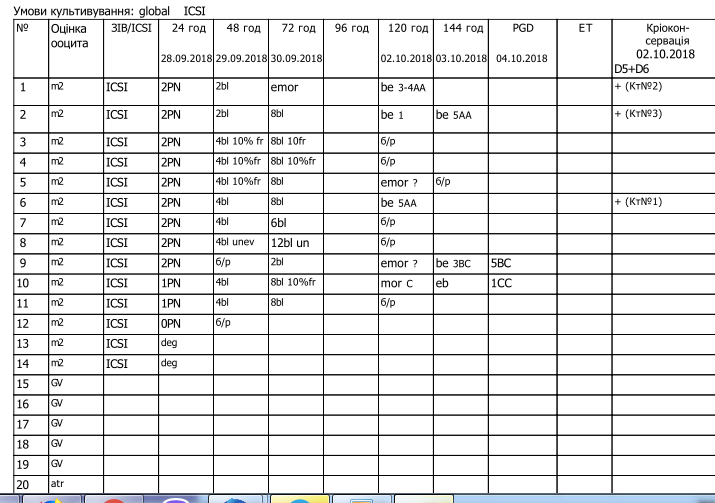 В итоге №6 не разморозился, №1 превратился в зб, как потом выяснилось, с хромосомными поломками, и №2 перенесли, и без имплантации. Изначально неплохой выход клеток, а осталась я ни с чем. Вот запросила протокол, пытаюсь разобраться.