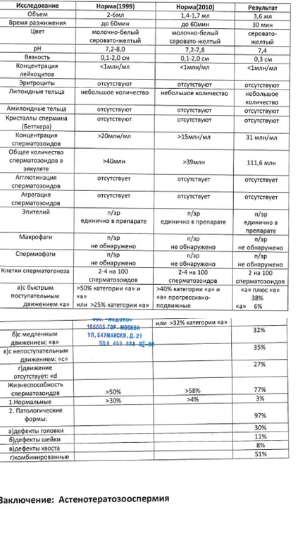 (У нас были проблемы с ЖФ у нее трубы со спайками, но все почистили у нее все ок и сейчас выявился МФ. Заключается как указано в спермаграмме МФ в том что количество общее 111 мл, концентрация на 1 мл - 31 млн, подвижность A+B - 38 проц, но вот Нормальных форм - 3 процнта((( Поставили Астенотератозооспермию.)