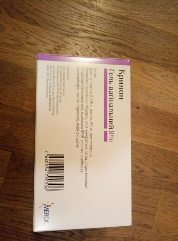 (почти полная без 2-5шт)- Кринон гель -15 шт аппликаторов в своей упаковке и инструкция.