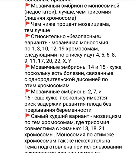Все об эмбрионах (+ПГД и Хэтчинг)Привет всем, после анализа ПГД эмбрионов (методом NGS) у нас здоровых ни одного, но есть 2 мозаика , по которым перенос возможен. Написано: низкоуровневый мозаицизм 24%, у одного по Х хромосоме, у второго по 16 хромосоме.