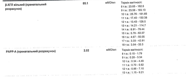 Смотрю, что высоковат биохимический риск, хотя ж вроде гормоны попадают в референтные границы для моих недель.