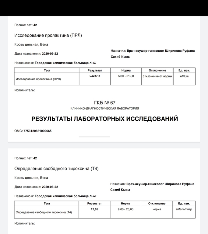 Анализы и процедуры. Помощь в расшифровке результатовДевочки привет. Я всё со своими анализами....Сейчас пришёл анализ ПРЛ(пролактин) 4237,3 при норме(59,0-619). Я в ужасе, с чем это может быть связано. Сдавала в марте было всё в норме 158. Вечером иду к гинекологу, но уже весь интернет перекопала, ни чего понять не могу...🤦♀️🥺🥺🥺