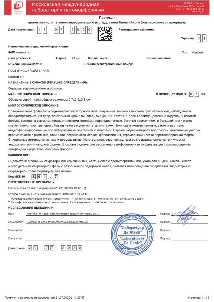 Хорошо, что на завтра перезаписались к врачу. Скорее всего в след цикле на 6-8 дц гистероскопию с РДВ вам назначат, а потом или лечение или протокол... плюс крио на ЗГТ