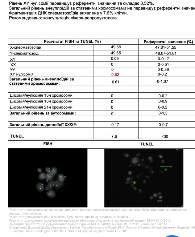 Мужской факторДевочки... Вчера пришли результаты Fish Tunel мужа. ДНК-фрагментация 7,6%, я так поняла, это хорошо. Но! В Fish вылезла нуллисомия XY хромосом (я и слов-то таких не знаю🙈), но в сумме риски анеуплоидий не превышают нормы за счёт остальных нулевых показателей. Как к этому относиться? Могло ли привести к замершей и в будущем к не здоровой беременности? Кто в курсе, сталкивался с таким анализом, можете написать, пожалуйста, о рисках, опыте и к чему готовиться? Заранее спасибо!
