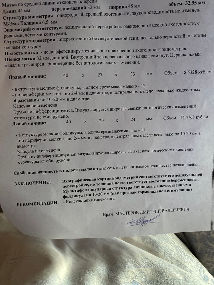Выпила 2 транексам, 1 дюфастон, 1 папаверин. В течении часа закончилось всё. Поехала в госпиталь, сдала срочный хгч,пока ждали результат смотрели на узи,ничего не увидели кроме как тонкий эндометрий но соответствующей перестройки (6,5 мм) Фото узи прилагаю!Пришел ХГЧ 474.1! Поставили беременность неясной локации (возможна внематочная) сказали наблюдать за состоянием и мониторить хгч.У кого были случаи маточной беременности с таким эндометрием