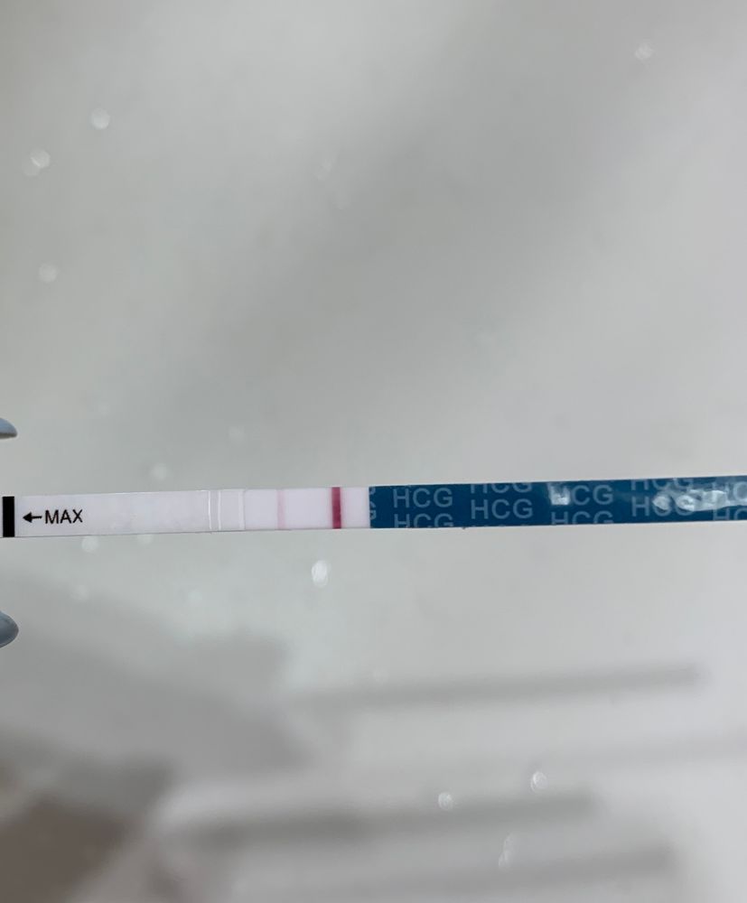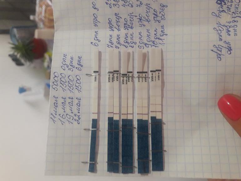 Через 2 дня после укола в 1500 примероо такаяже полоска была, хгч в крови был около 30 единиц