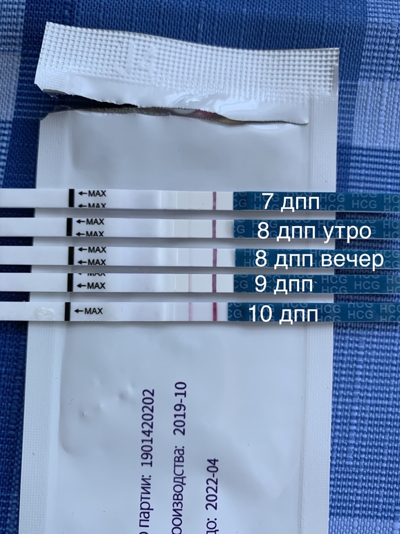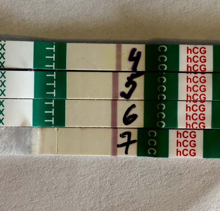 Вот мои тесты, правда у меня не было уколов. На 3,4,5,6 дпп тесты пустые, серый призрак появился на 6 дпп, но я думала, что меня уже просто глючит, а вот с 7дпп появилась бледная розовая полоска, на 14 дпп ХГЧ 2189.