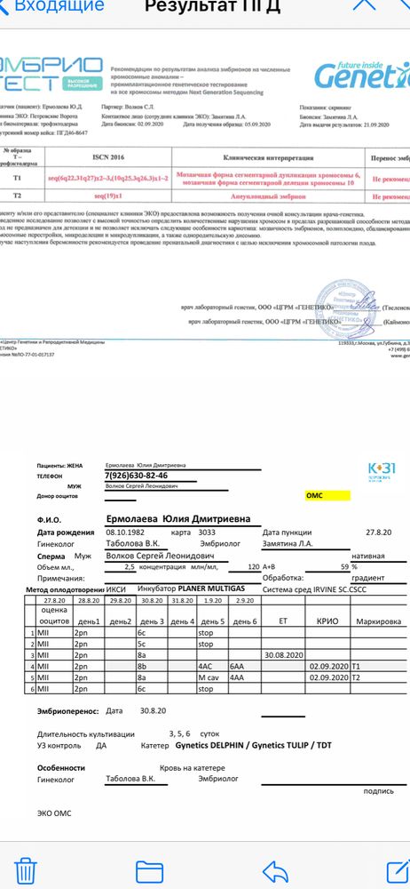 Третий протокол по Омс!!!Всегла на выходе 2 эмбриона слабых!(в этот третий протокол сильные,решили отправить на пгд...),пришёл результат что оба не