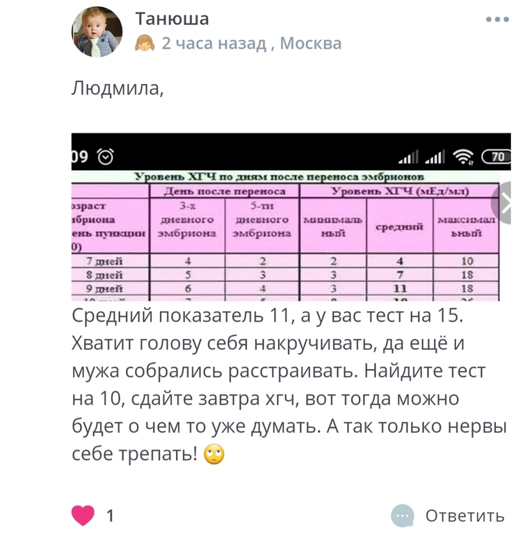 Тата, доброе утро,мы с вами почти одновременно выложили посты....У меня тоже глухо....к сожалению. Блин....Может октябрь такой не удачный....Смотрю ленту и кто тоже перенос делал в наших числах, ни одного положительного результата....капец.