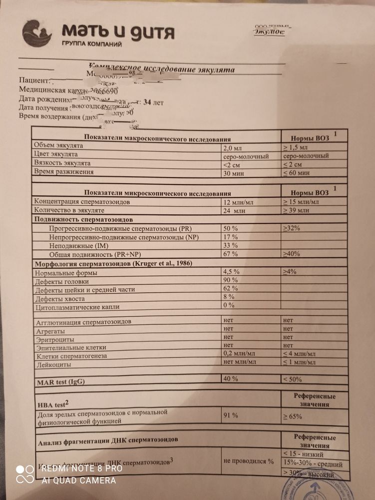 Анализы и процедуры. Помощь в расшифровке результатовДевочки всем привет🙋Прошу помощи вашей, после нескольких неудач, решили взяться за здоровье мужа. Так как никогда особо тщательно его не проверяли, сдавали только СГ для ЭКО. Теперь пришла мысль что хочу все же попробовать лечить его, в надежде на ЕБ. Прикрепила последний анализ, подскажите все ли показатели здесь указаны, т.к. читала что есть ещё мар тест и фрагментация ДНК..пока для меня это "темный лес"🥴🙈