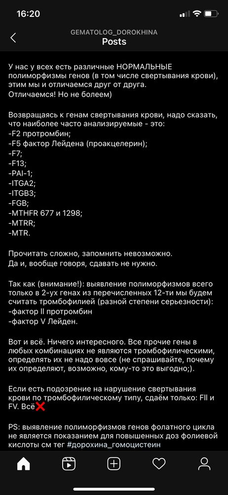 Анамнез не сильно критический, протромбин бывал пару раз на верхней границе, протромбиновое время на нижней, средний объем тромбоцитов понижен, тромбоциты по верхней границе, Д димер в норме, гомоцистеин был 7,8 - 10,3, у папы плохие вены, у меня есть варикоз. Перед родами гипертензия, при обычной гипотензии. Врач сказал, что сочетаемость параметров говорит не в мою пользу, и чтобы исключить в будущем проблемы, надо проверить систему гемостаза и все вот это.