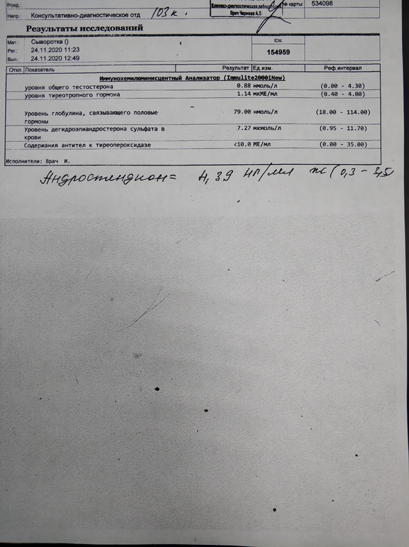 Добрый день, получила результаты гармонов. В целом в нормы показатей укладываюсь,но вот андростендион опять завышен,может от него произошел выкидыш (