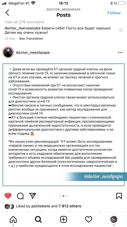 У меня (да и у мужа тоже) ни кашля, ни одышки, ни боли в груди нет, хотя болеем уже неделю. Но конечно, пугают рассказы про пневмонии без температуры и поражённые лёгкие без кашля🙈