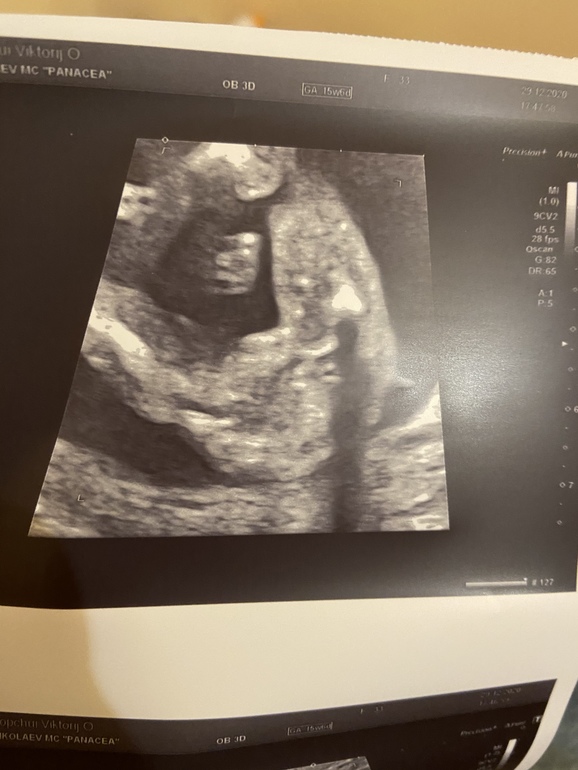 Та она на самом деле хороший толковый не паникующий узист и 3д врубила и я ей когда эмбрио перенос бумажку дала, то она минут 10 настойчиво член искала и говорит, я не нашла, гинеколог моя позвонила говорит и я и узист вдвоём смотрели на один монитор 2 недели тому и нам не показалось, все там норм, иди в 18 недель и все увидим точно. Сейчас реально по этому фото конечно ниче не вижу