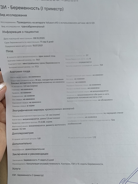 в общем вроде как все хорошо, соответствуем сроку, все хромосомные замеры в норме, ждем кровь)