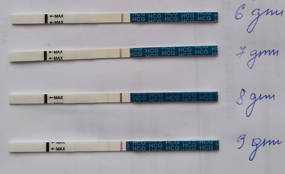 На тесты даже не смотрите, там вон даже контрольная полоска по яркости отличается от теста к тесту. А ещё говорят что с девочками хгч выше и растёт стремительнее. Зачем вы так рано стали сдавать? Лучше радуйтесь что скоро снова станете мамой, расстроиться всегда успеете)