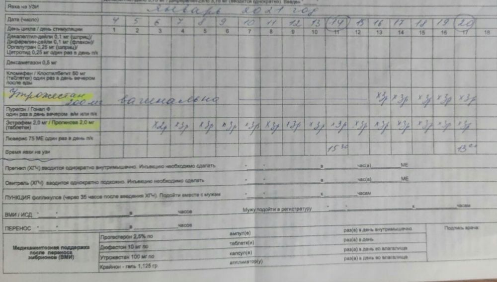 Протоколы ЭКО (Все о них, все об этом периоде+Гиперстимуляция)Всем привет, как обещала сообщаю о промежуточном приеме: эндометрий хорошего качества 8.5. Оставила дальше прогинову + добавила Утрожестан по 600 каждые 8 часов. Так же отдельно прописала после переноса: хорионический гонадотропин 1000ед по 1 уколу в 3 разных дня + Курантил N25 по 3 таблетки в день. Перенос 20 января, будем переносить 2 наши крошечки. Жду с нетерпением и любовью своих малышей. Желаю всем успехов, здоровья и заветные //.