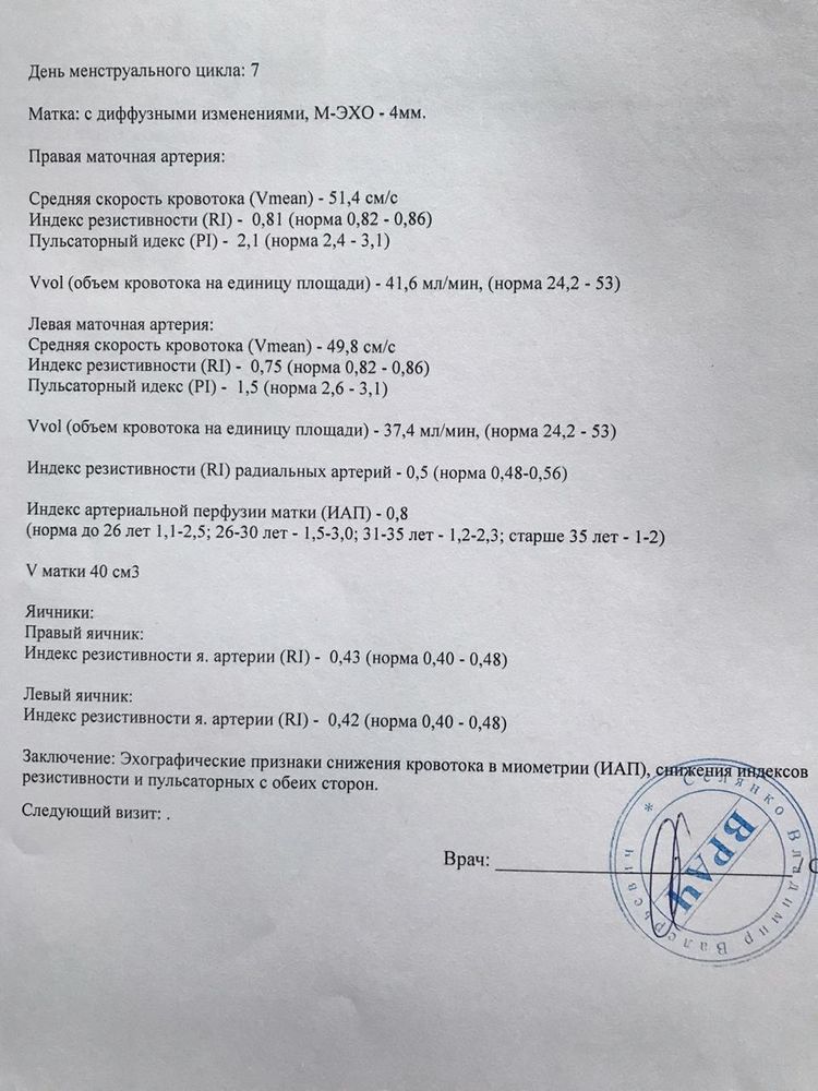 Анализы и процедуры. Помощь в расшифровке результатовДевочки, сделала доплер сосудов малого таза. Врач, который делал, сказал, что все хорошо, немного снижены показатели, но это нормально для 7дц, а потом к середине цикла разгоняется. Правда ли это, как думаете?
