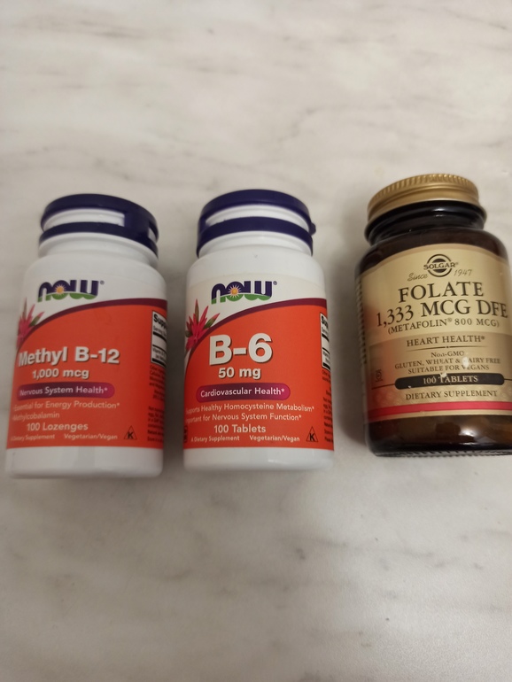 У меня без метиониновой нагрузки (соевый белок больше ела) был гомоцистеин 6 как раз и на фолиевой обычной. У меня mthfr 677 гетерозигота (это один из самых лёгких вариантов). С витамином В12 нет проблемных полимофизмов, от витамина в12 болит голова (у моих родственников тоже болит, хоть таблетки с айхерб, хоть уколы из аптеки).