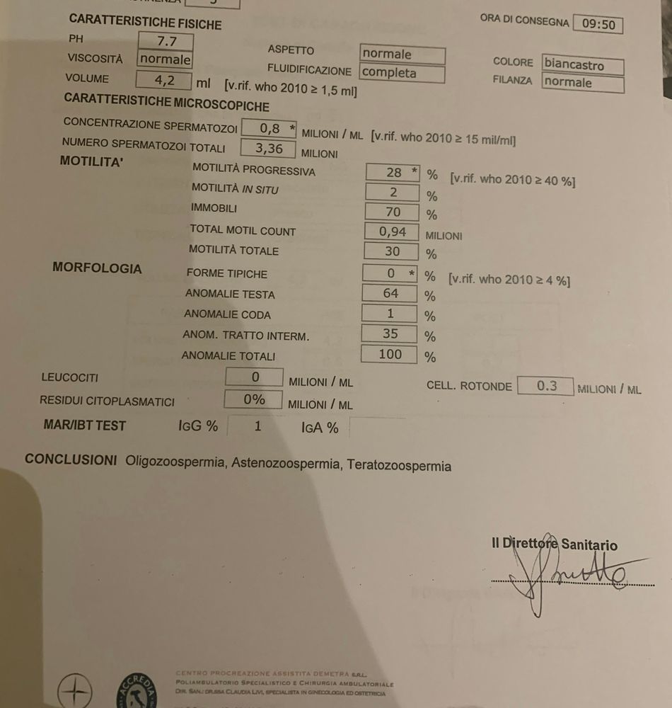 Мы живем в Италии, тут вообще от врача слова не вытянуть: единственное что мне сказала, что учитывая и Ж и М фактор, шансы не велики . Поделитесь пожалуйста у кого были подобные истории ? Возможно не все так плохо как нам пророчат!!! Спасибо за ранее !