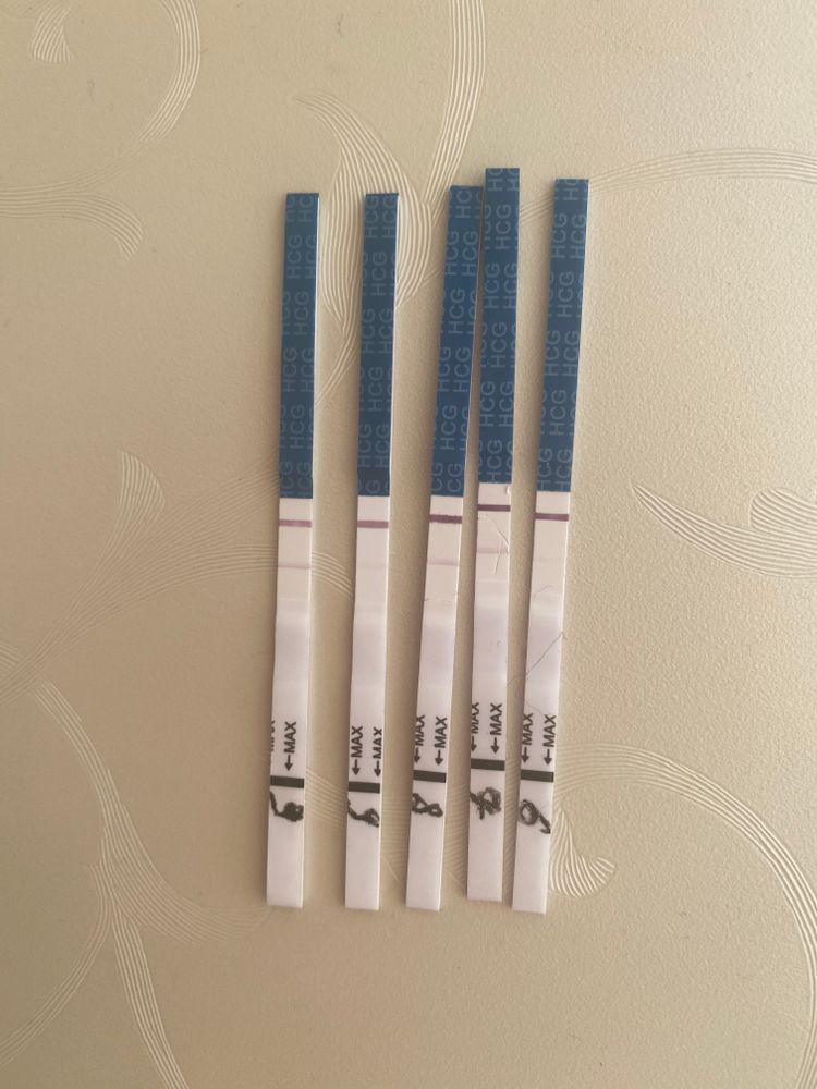 сделала ещё два теста и они такие же, как предпоследний на фото, то есть тесты не ярчают, а наоборот полоска пропадает. Хгч сегодня сдала, но никак не могу успокоится, что это видимый конец моей первой истории ЭКО.((