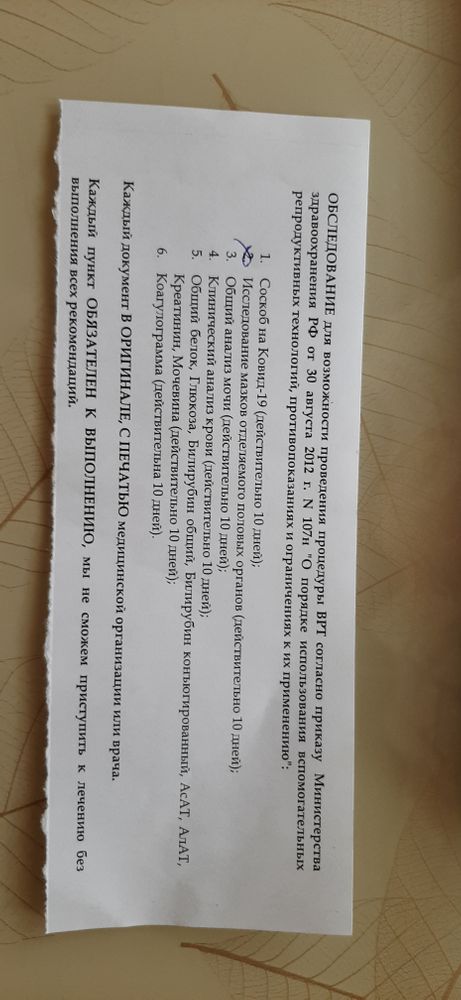 Светлана, это не для квоты. Это список для платного крио. Эти анализы Вы приносите, когда уже вступили в криопротокол.