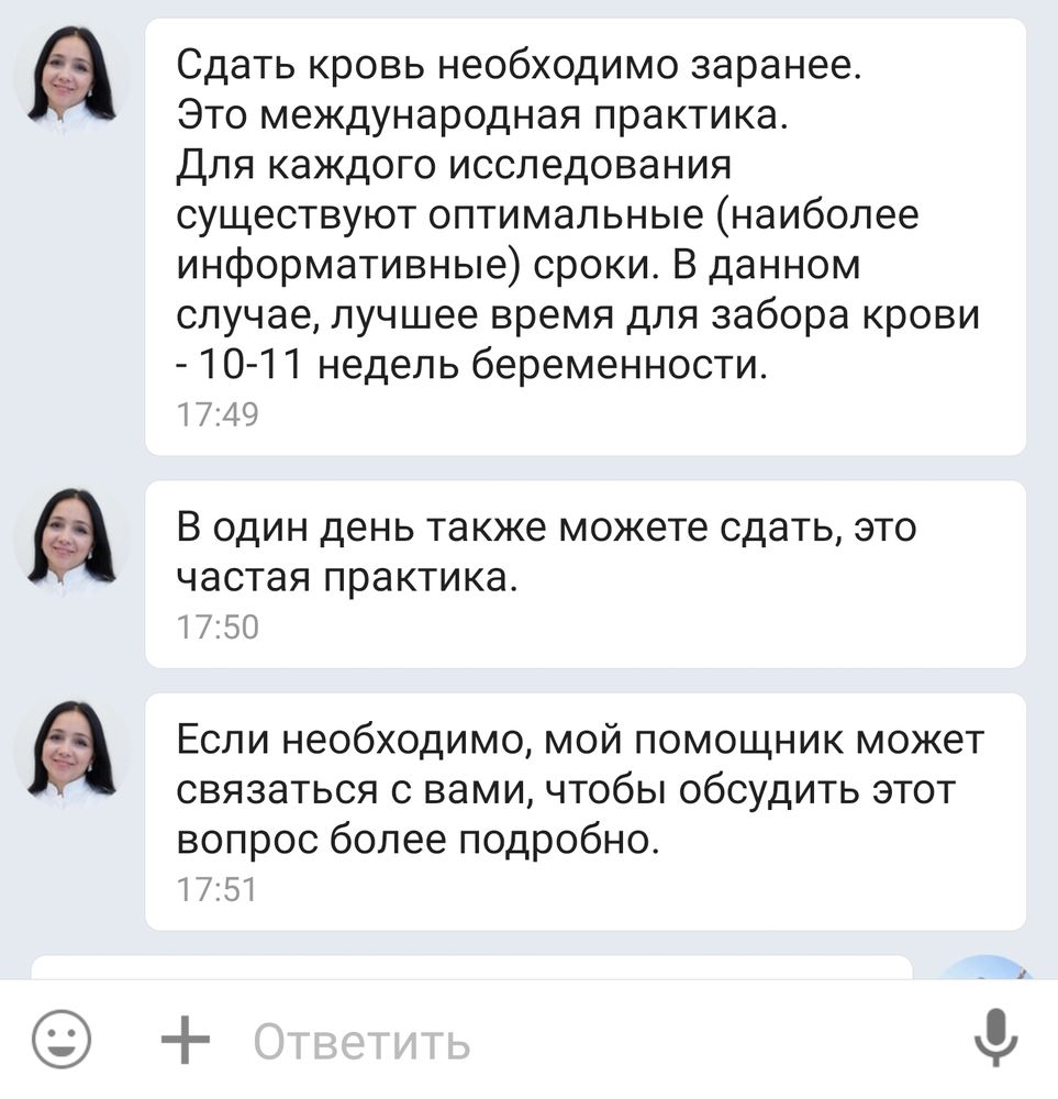 Katerina Makarova, я пишу о том почему желательно кровь и узи в один день )