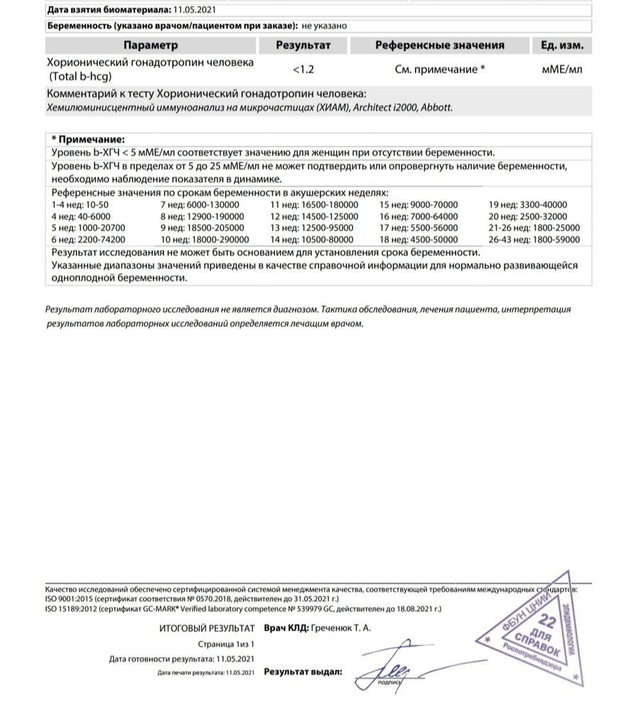 Сегодняшний тест и хгч