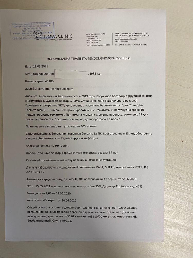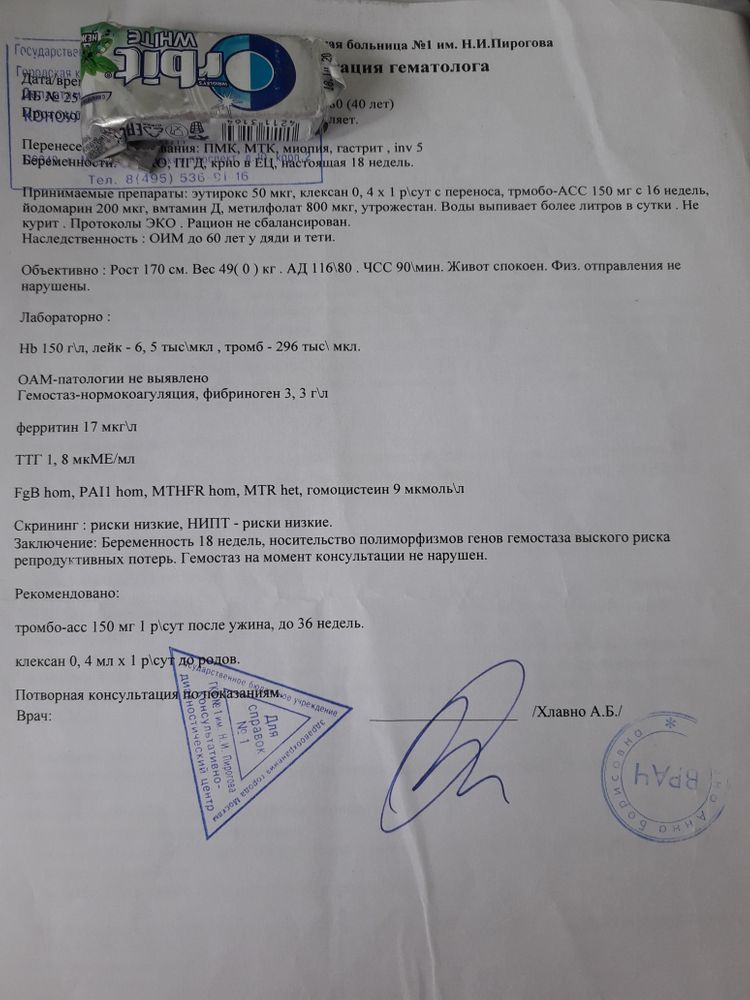 В этот вторник гематолог, основываясь на этих анализах, которые были сданы ДО переноса, отменил клексан, мол не нужен и не нужен был в целом.